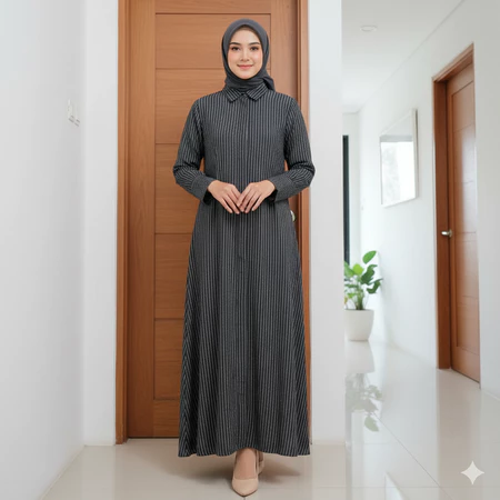Dress Gamis Muslim Salur Nyaman Bumil & Busui Friendly New 2026